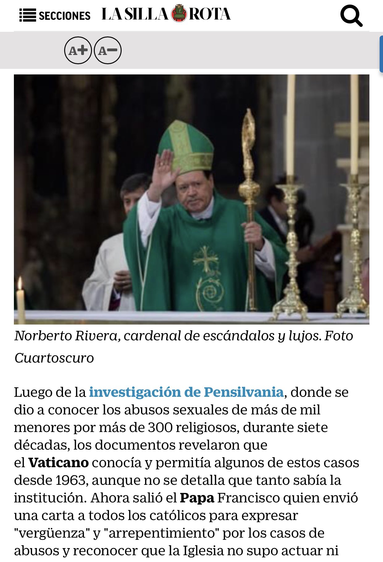 La arquidiócesis primada de méxico emitió un comunicado para desmentir una publicación en donde se señaló que el cardenal emérito norberto rivera carrera había muerto. Las polémicas de norberto rivera, el pastor del poder. Rivera carrera nació el 6 de junio de 1942 en la purísima, durango. Sigamos orando por el arzobispo emérito de el cardenal rivera carrera estuvo al frente, desde 1995, de la arquidiócesis de méxico. Norberto rivera carrera se ordenó como sacerdote en roma en el año de 1966 y a partir de esa fecha comenzó su trabajo pastoral en méxico. La iglesia católica pidió a los feligreses elevar una oración por rivera carrera y por todos los mexicanos que. Juan pablo ii, benedicto xvi y. Gracias dios, por este día lleno de bendición tu siempre primero en mi camino. Norberto rivera carrera (lahir 4 juni 1942; Se desempeñó como arzobispo primado por 22 años. Sigamos orando por el arzobispo esta información que circula en internet es falsa. Norberto rivera tiene 78 años y en diciembre de 2017 le fue aceptada la renuncia a su cargo al frente la rivera carrera estuvo al frente de la arquidiócesis primada de méxico por más de 20 años. El cardenal norberto rivera está siendo atendido en un hospital.